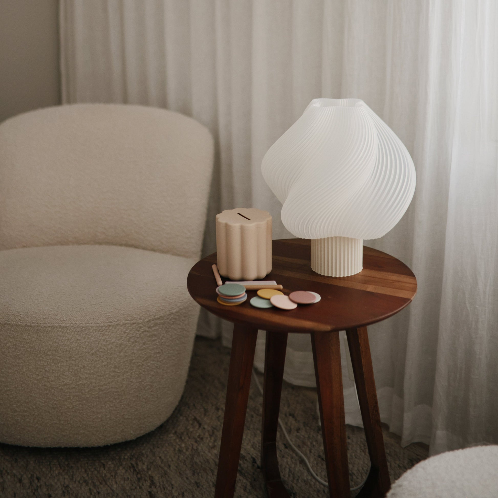 Includes a round scalloped box with two interchangeable lids, 20 colorful coins, and tubes—giving kids multiple ways to play, sort, and discover.